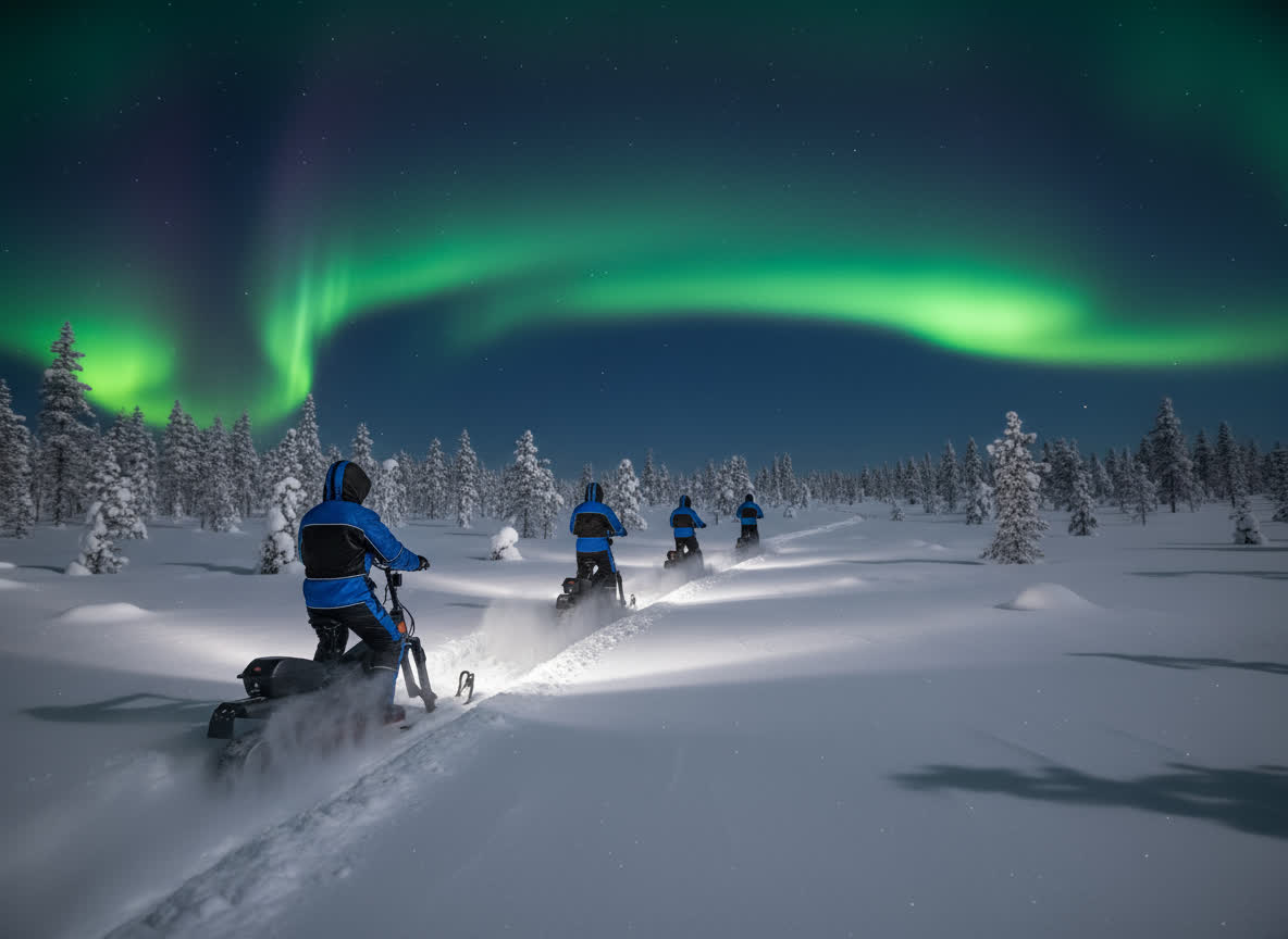 Snowmobile Sleigh Ride to the Aurora Cabin (Northern Lights)